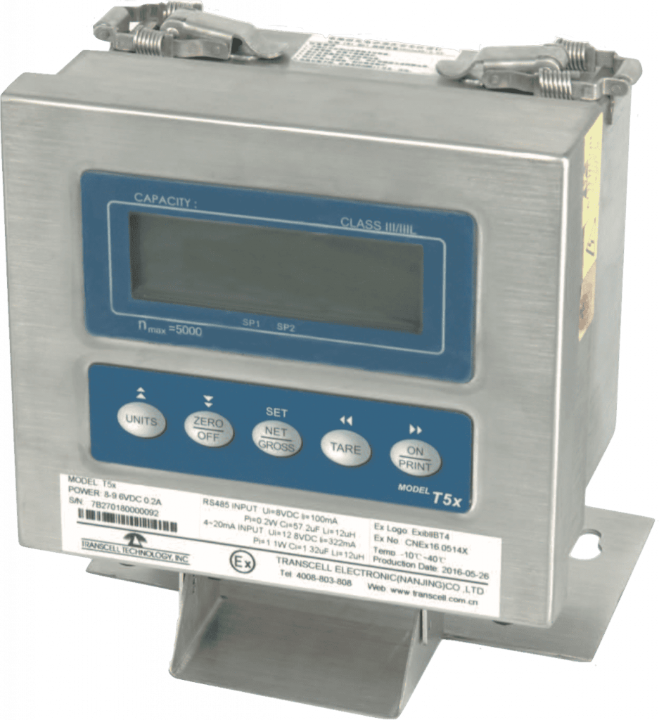 The Transcell intrinsically safe indicator meets explosive standard ExibIIT4Gb. It is intended as a control system for explosive or flammable operations. We designed the component to convert weight values to 4-20mA output, 0-10V output, or RS485 signals.